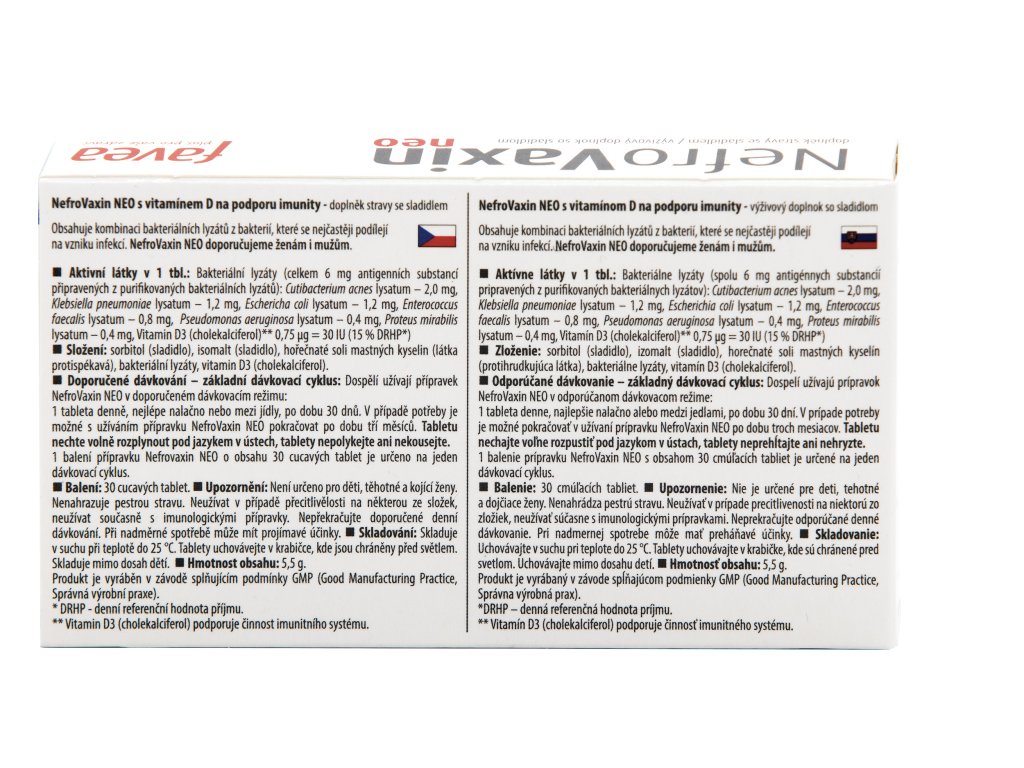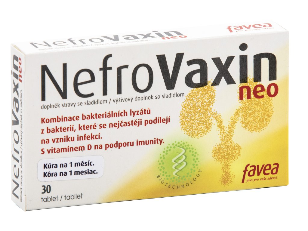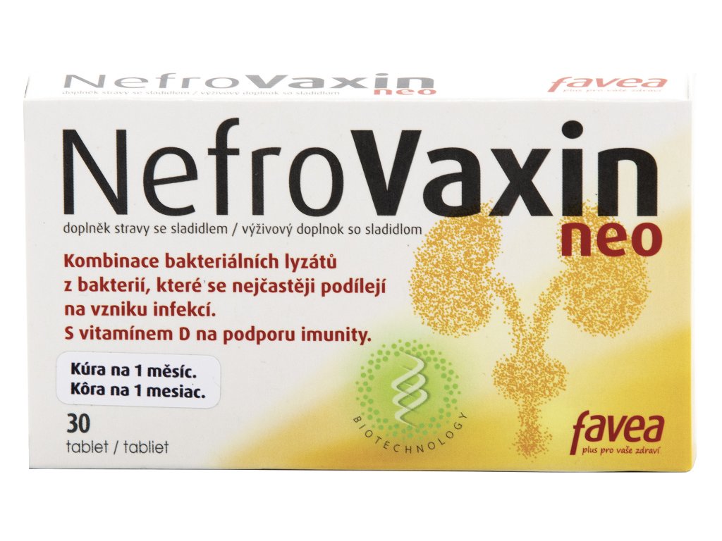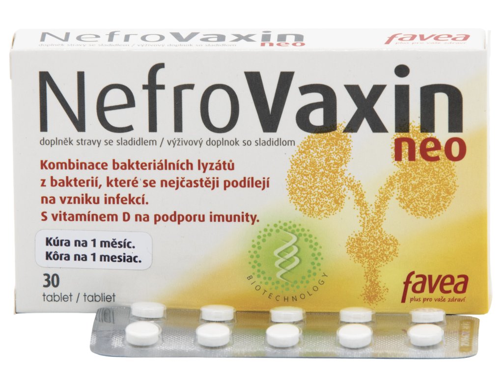 Obsahuje kombinaci bakteriálních lyzátů z bakterií, které se nejčastěji podílejí na vzniku infekcí. NefroVaxin NEO doporučujeme ženám i mužům.